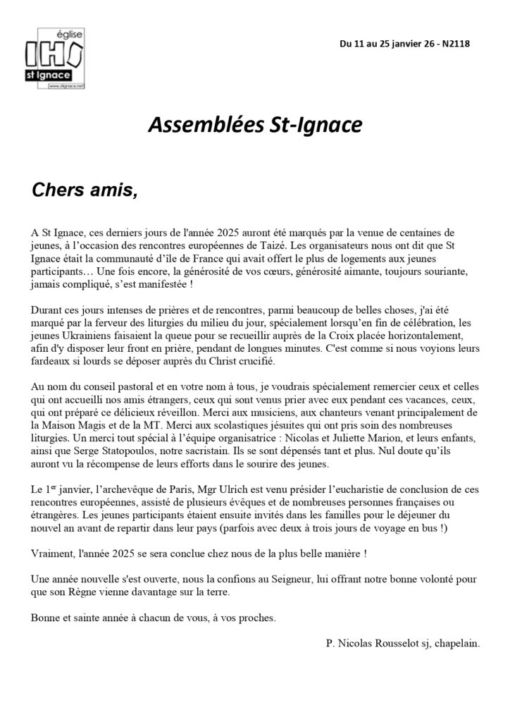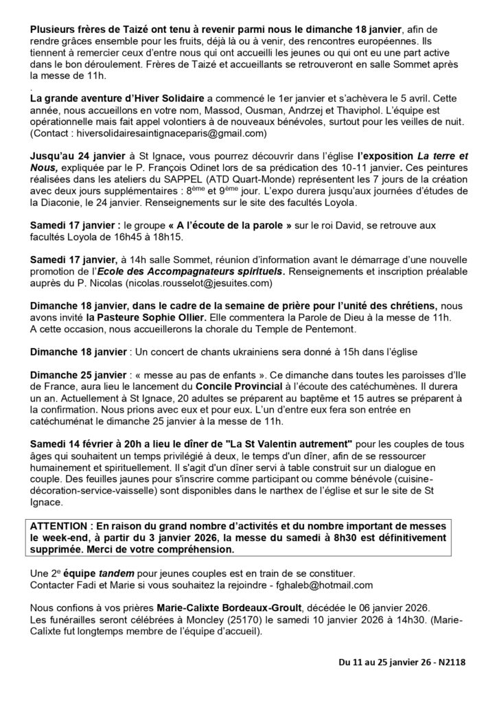 Feuille de quinzaine du 11 au 25 janvier 2026
