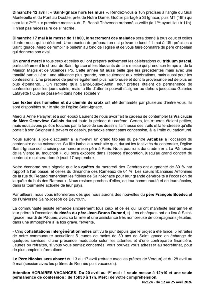 Feuille de quinzaine du 12 au 26 avril 2026