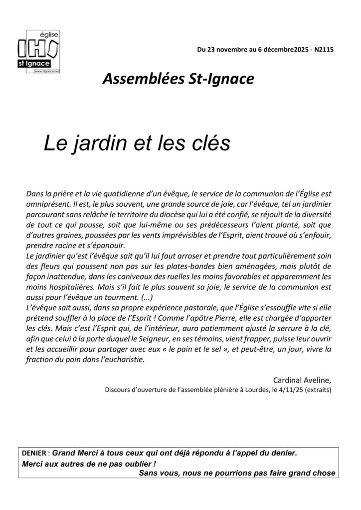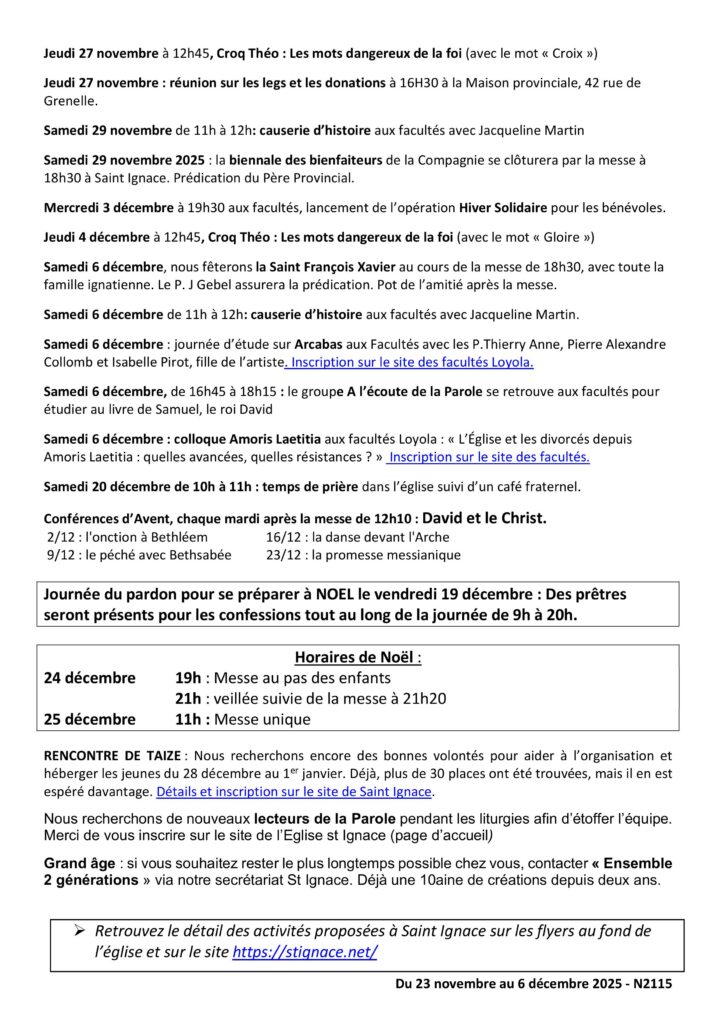 Feuille de quinzaine du 23 novembre au 6 décembre 2025