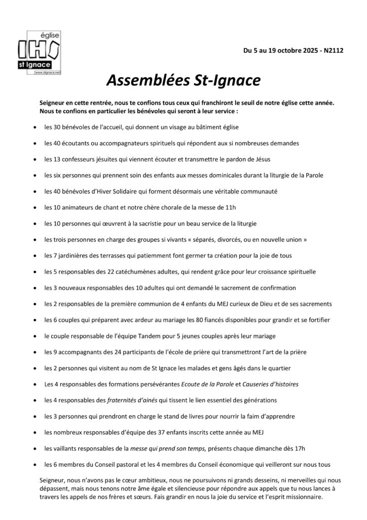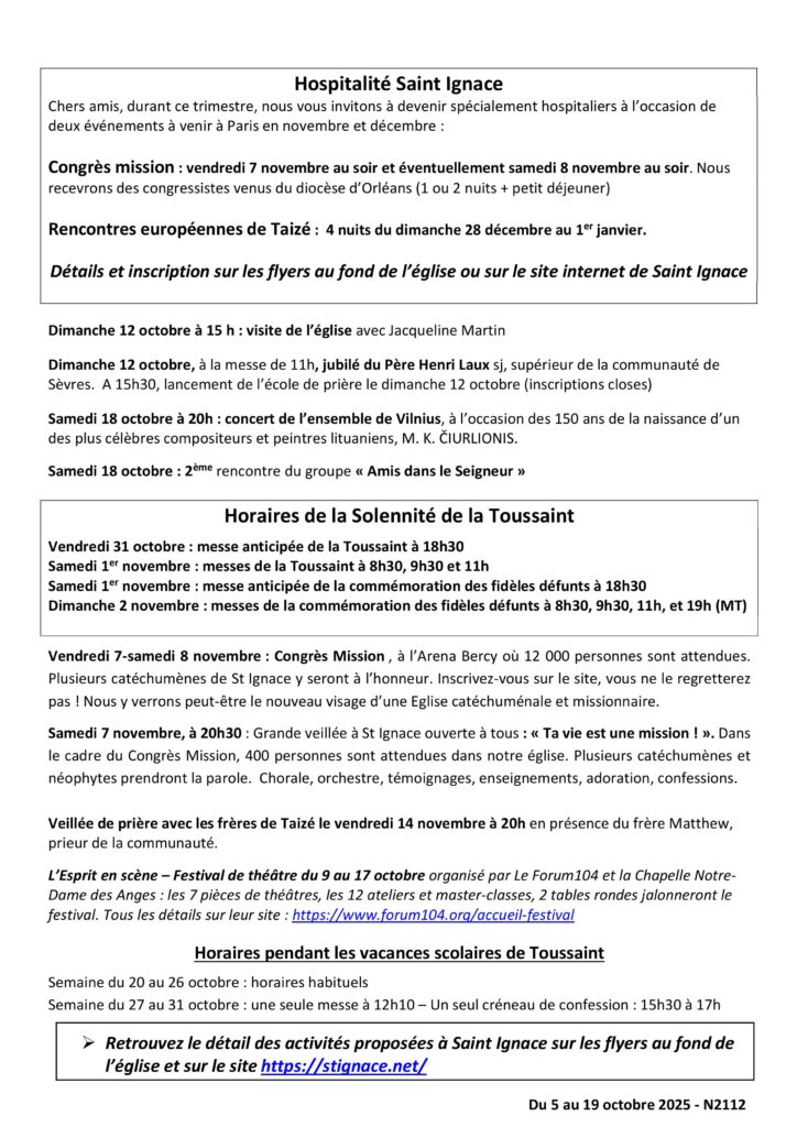 Feuille de quinzaine du 5 au 19 octobre 2025