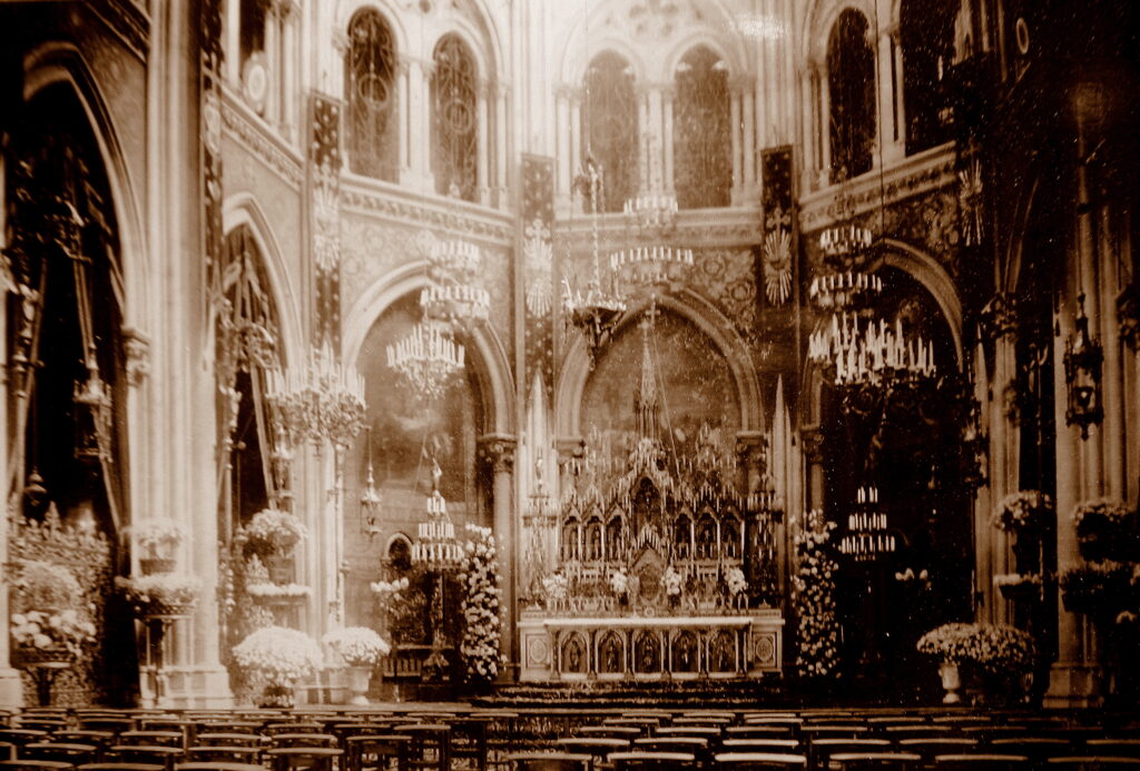 ation des chapelles latérales et de l’édifice néogothique, alliant la sobriété, l’élan des pierres avec la somptuosité des peintures qui dans un style romantique, évoquent les grandes figures de la Compagnie de Jésus, que nous vous invitons maintenant à découvrir.